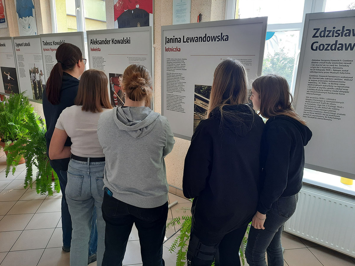 Plansze wystawy „Sportowcy dla Niepodległej. KATYŃ” były eksponowane w Zespole Szkół Mistrzostwa Sportowego w Chorzowie.  – Dziękujemy Instytutowi Łukasiewicza za kolejny projekt, który trafił do naszej szkoły. Wystawa ta to cenny materiał uzupełniający i rozszerzający wiedzę uczniów – mówi Katarzyna Lisek, nauczycielka historii. – O Katyniu rozmawiamy na lekcjach historii, jednak spojrzenie na tragedię roku 1940 przez pryzmat sportowców to dla uczniów zupełnie coś nowego. Historie sportowców prezentowane na wystawie stały się inspiracją dla uczniów, by zgłębić wiedzę.