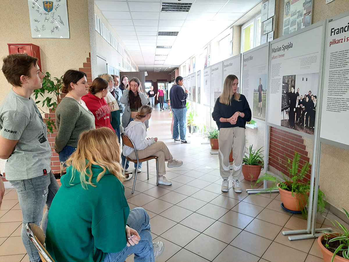 Plansze wystawy „Sportowcy dla Niepodległej. KATYŃ” były eksponowane w Zespole Szkół Mistrzostwa Sportowego w Chorzowie.  – Dziękujemy Instytutowi Łukasiewicza za kolejny projekt, który trafił do naszej szkoły. Wystawa ta to cenny materiał uzupełniający i rozszerzający wiedzę uczniów – mówi Katarzyna Lisek, nauczycielka historii. – O Katyniu rozmawiamy na lekcjach historii, jednak spojrzenie na tragedię roku 1940 przez pryzmat sportowców to dla uczniów zupełnie coś nowego. Historie sportowców prezentowane na wystawie stały się inspiracją dla uczniów, by zgłębić wiedzę.